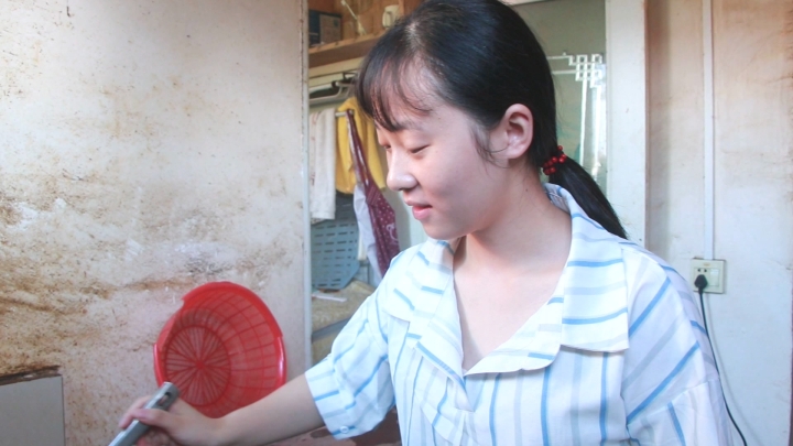 见到小子兰,她正在读背大学英语四级的单词,屋里狭小的空间让人感到异常闷热,在和我们交谈的时候,她浑身洋溢着乐观自信,甜甜的笑容总是挂在脸上。