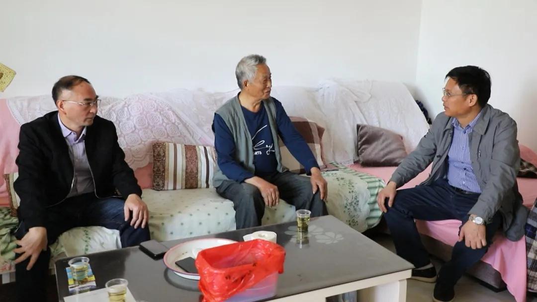 在省劳模龚陆生家中,慰问人员将慰问品交到劳模手中,并询问他最近的工作与生活情况,希望其能够继续发挥劳模作用,为西湖的建设贡献力量。