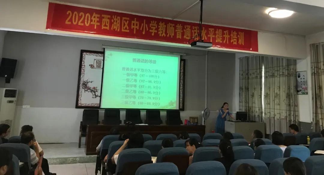 7月11日,为期四天的暑期理科教师普通话水平提升培训在西湖一中阶梯教室展开,各中小学年龄在45岁以下的理科类教师共91人参加了此次培训。