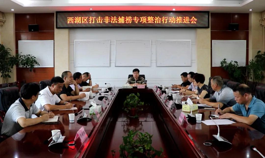 8月10日,西湖管理区召开打击非法捕捞专项整治行动推进会议,对全区禁捕工作进行再安排、再部署、再推进。区党委委员、管委会副主任张文辉主持会议并提出工作要求。
