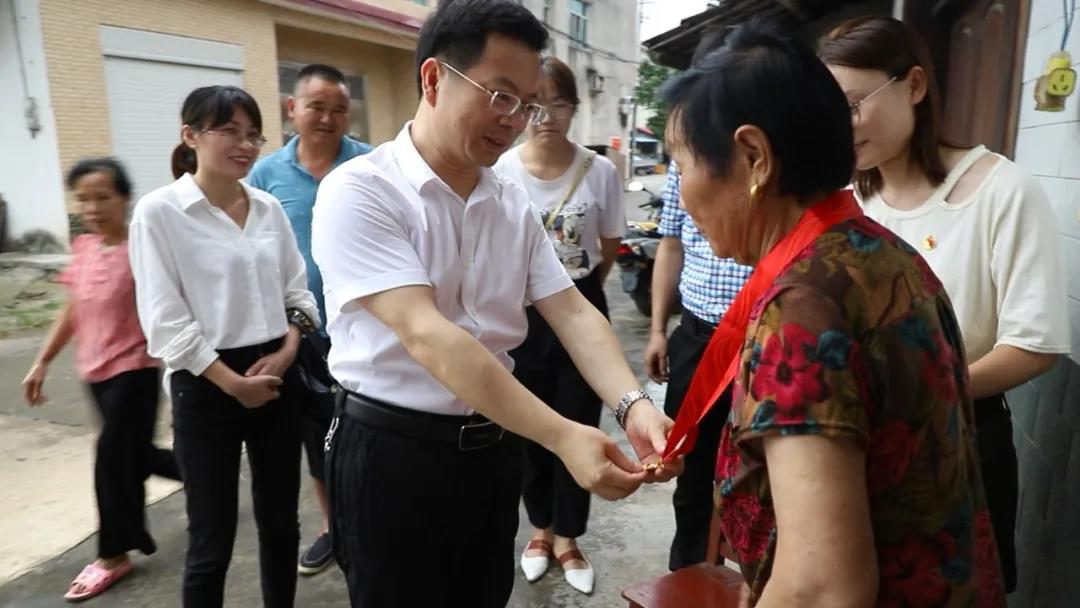 在西湖镇老党员龚东凤家中,吴兴国关切地询问了老人的日常生活状况,认真倾听老人回忆奋斗往事。龚东凤今年84岁,党龄50年,吴兴国对其艰苦奋斗的精神表示肯定,并亲手为她戴上了“光荣在党50年”纪念章,将党的关怀温暖送进家中、送到心里。