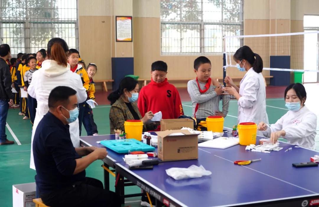11月2日,西湖卫健局、疾控中心、西湖人民医院等单位来到西湖中心小学开展3-11周岁人群新冠病毒疫苗接种工作。该校共有1200余名学生完成了第一剂疫苗接种。