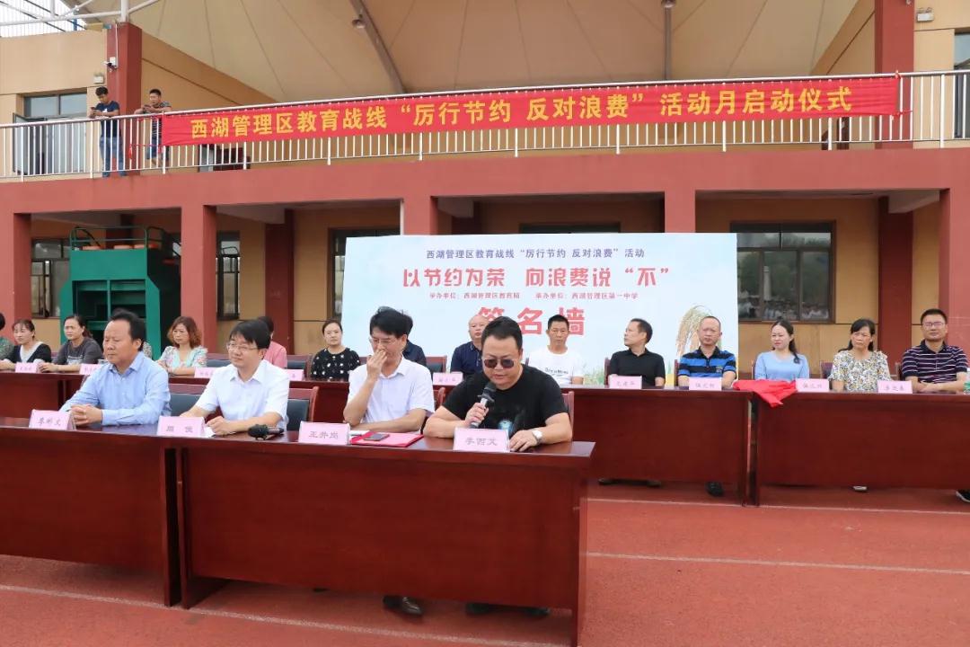 为贯彻落实习近平总书记关于制止餐饮浪费行为的重要指示,9月11日上午,西湖管理区教育战线开展“厉行节约 反对浪费”活动月启动仪式。各中小学校校长、幼儿园园长、区教育局在职全体干职工以及西湖一中全体师生等2700多人参加了启动仪式。