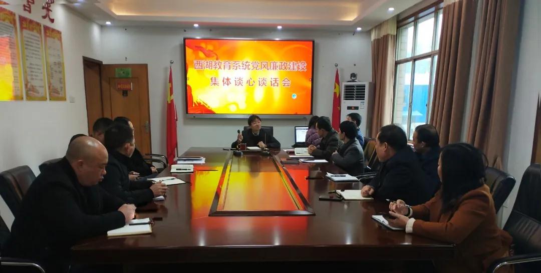 11月27日上午,西湖管理区教育局开展全系统党风廉政建设谈心谈话专项活动,教育局全体工作人员以及全区中小学校校长参加。