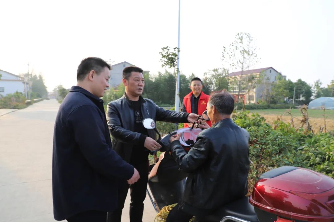 “您好!请佩戴好安全头盔,要保护好自己的安全。”督查现场,各村的交通劝导员在辖区车流量较大的主要路段耐心劝导广大群众自觉遵守道路交通法规,引导大家驾乘电动车、摩托车要按规定正确佩戴好安全头盔,做到文明出行、安全出行。