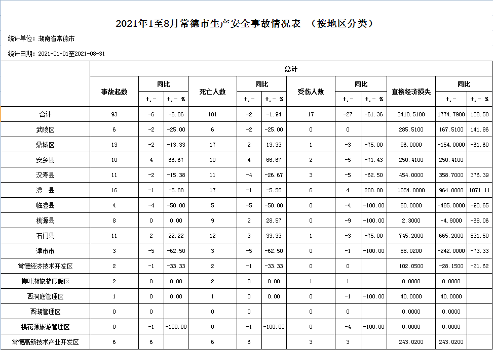 2.2021年1至8月常德市生产安全事故情况表(按地区分类)