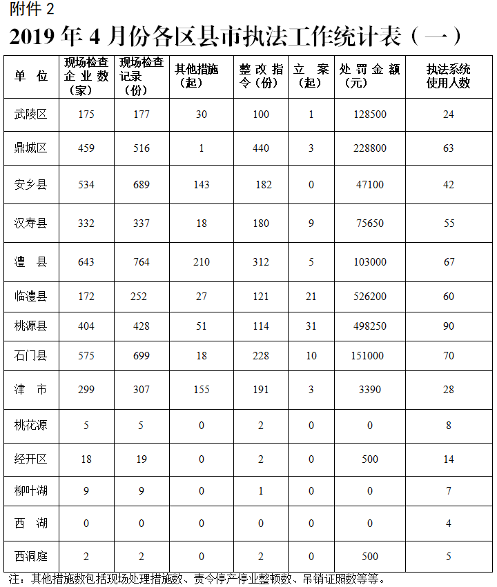 2.2019年4月份各区县市执法工作统计表(一)