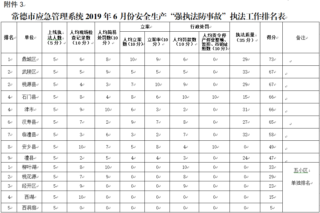 3.常德市应急管理系统2019年6月份安全生产“强执法防事故”执法工作排名表