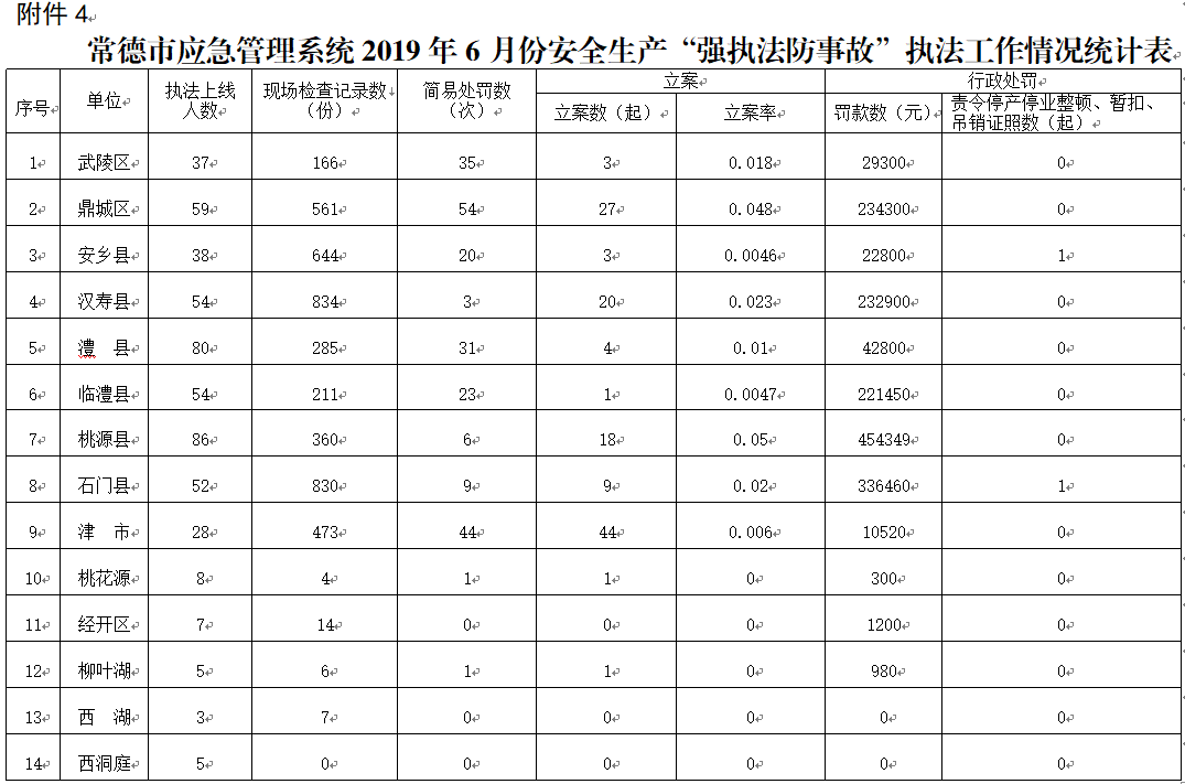 4. 常德市应急管理系统2019年6月份安全生产“强执法防事故”执法工作统计表