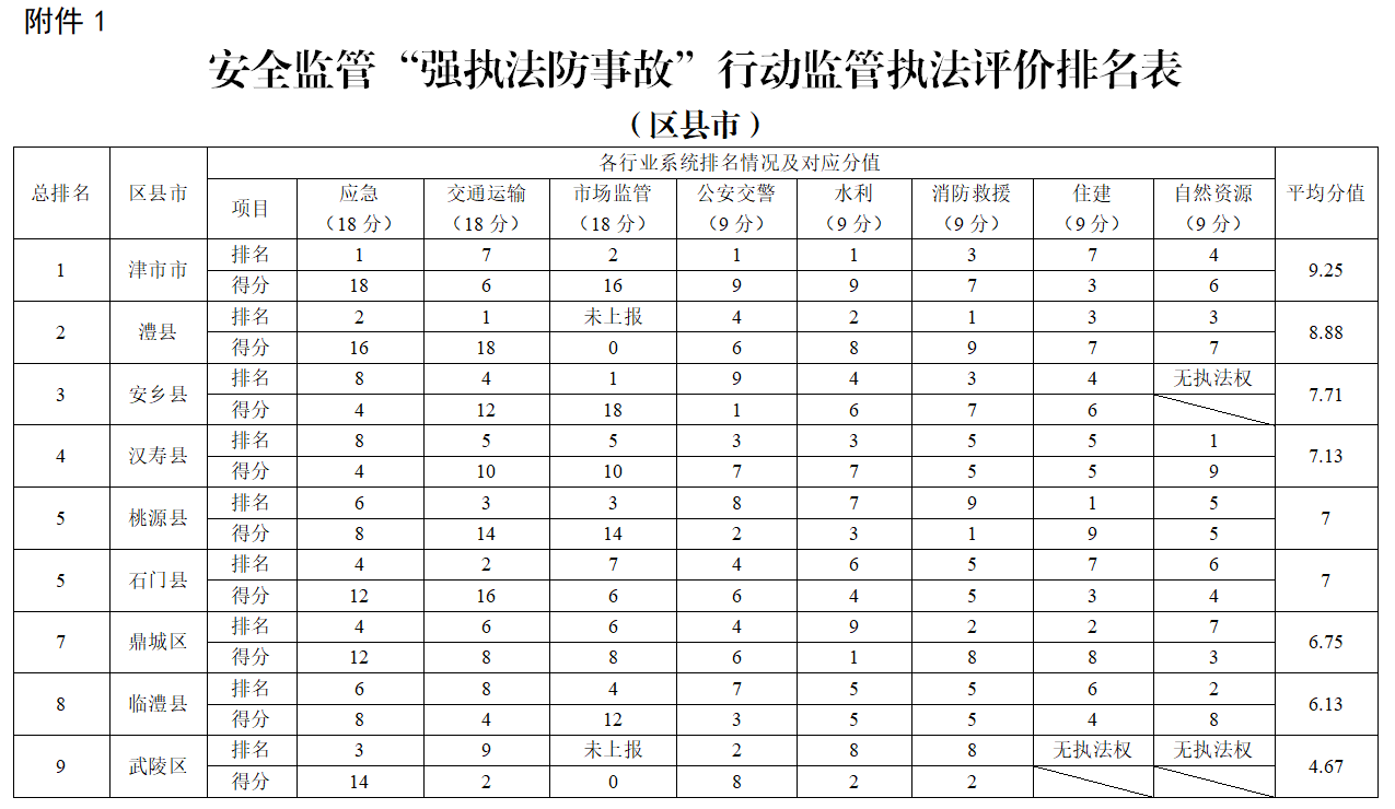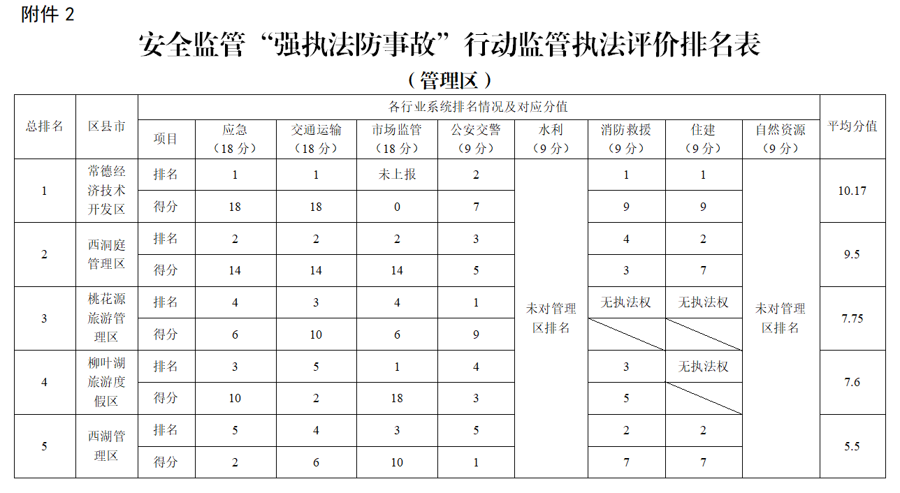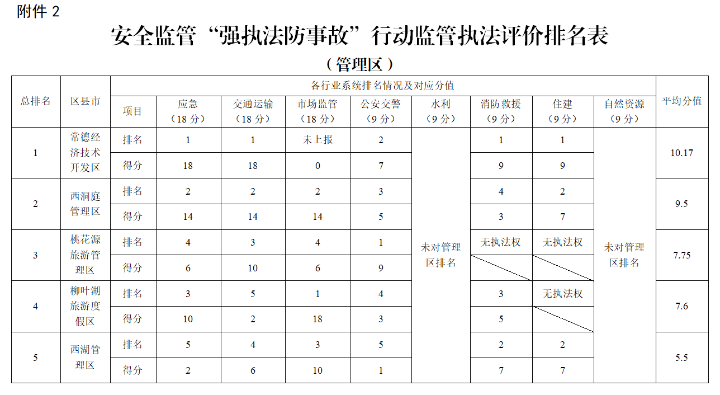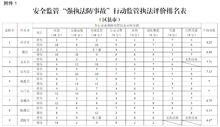 3.2019年度常德市安全监管“强执法防事故”行动监管执法评价排名办法