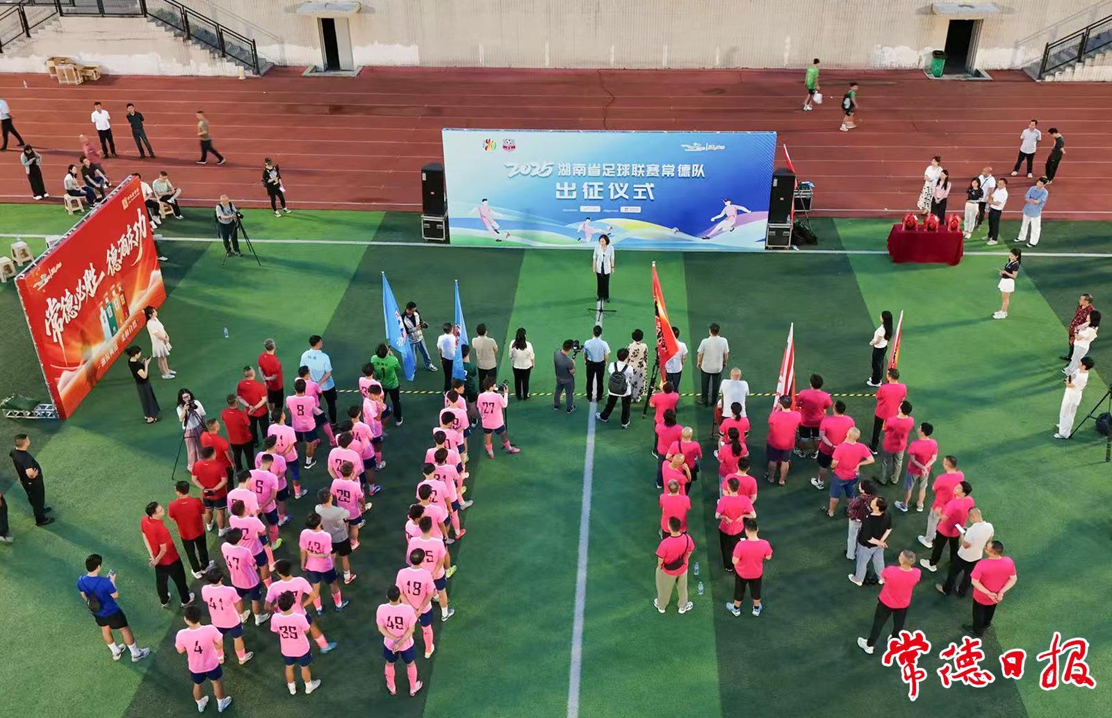 9月11日,“财信金控”2025湖南省足球联赛“德山酒”常德赛区常德队出征仪式,在常德市德善学校热血启幕。市委常委、市委宣传部部长黎军锋出席并为球队授旗,副市长陈华作动员讲话,现场百余名球迷共同为球队壮行。