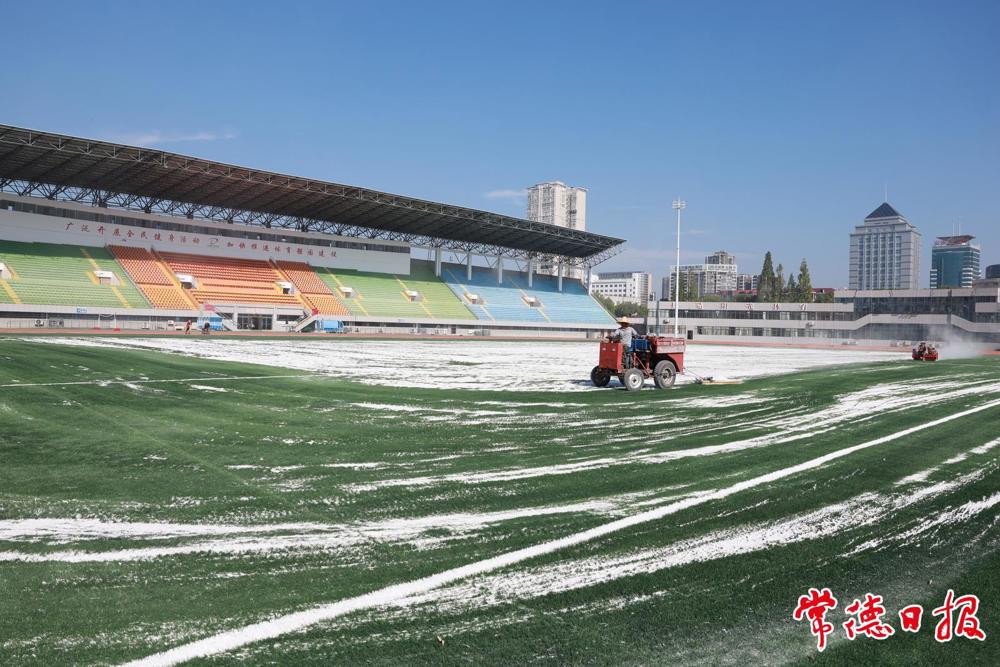 9月23日,常德市文化旅游广电体育局回复称,为保障“湘超”联赛常德赛区赛事顺利举办,常德市全民健身服务中心足球场的翻修工程已于9月19日基本完工,目前已进入最后的验收与测试阶段。据悉,本次改造工程主要包括足球场草皮更换、看台座位清理、消防设施更新等项目。为了不影响赛事正常进行,足球场按照“湘超”赛事标准使用了人造草皮进行铺设。