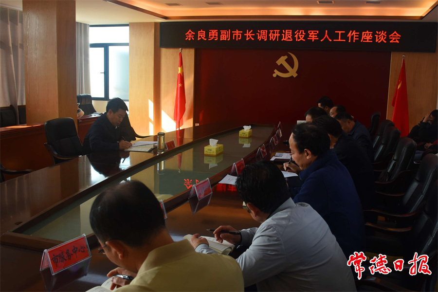 昨日,副市长、市公安局局长余良勇先后到武陵区启明街道双拥主题公园、启明街道退役军人服务站、皇木关社区退役军人服务站、市军休所、市退役军人服务中心等地,实地了解基层退役军人服务保障体系“五化”达标建设和实体运转、双拥工作、军休服务管理以及矛盾问题化解等情况。