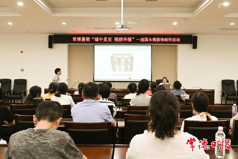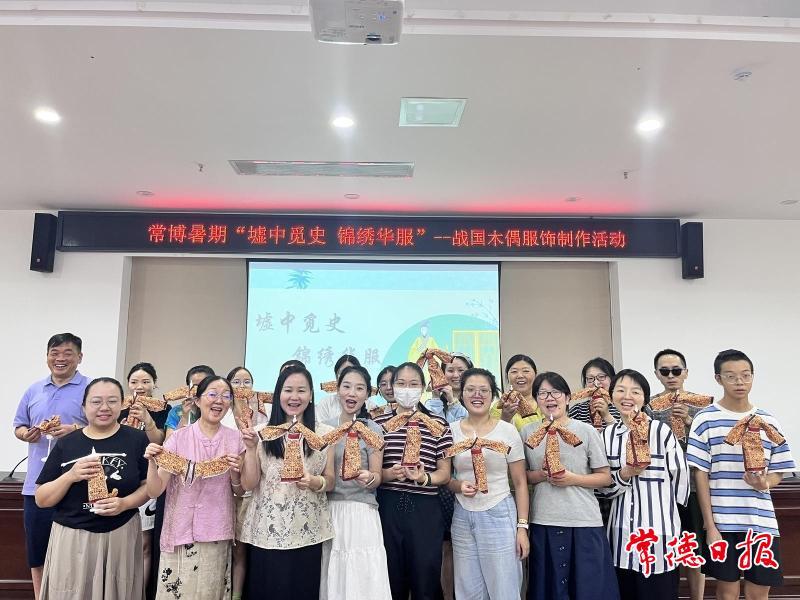 8月30日上午,常德博物馆二楼多功能会议室内,30位市民静坐于桌前,手持剪刀和胶水,俯身于木质人偶之上,仿制战国时期的服饰。在这场名为“墟中觅史·锦绣华服”的战国木偶服饰制作社教体验活动中,现代人与古老文明展开了一场跨越两千多年的对话。