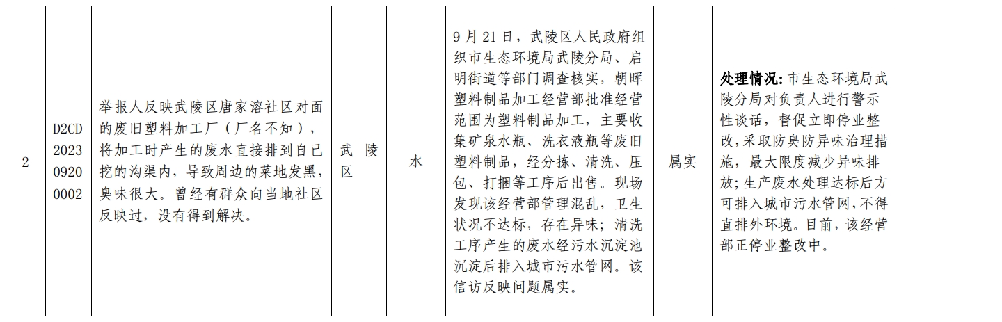 群众信访举报转办和边督边改公开情况一览表(第十五批2023年9月20日) 字体:小 大 打印 分享到: 2023-09-25 21:00 来源:常德市生态环境局 点击次数: 次 【我要纠错】 责任编辑: 扫一扫在手机打开当前页