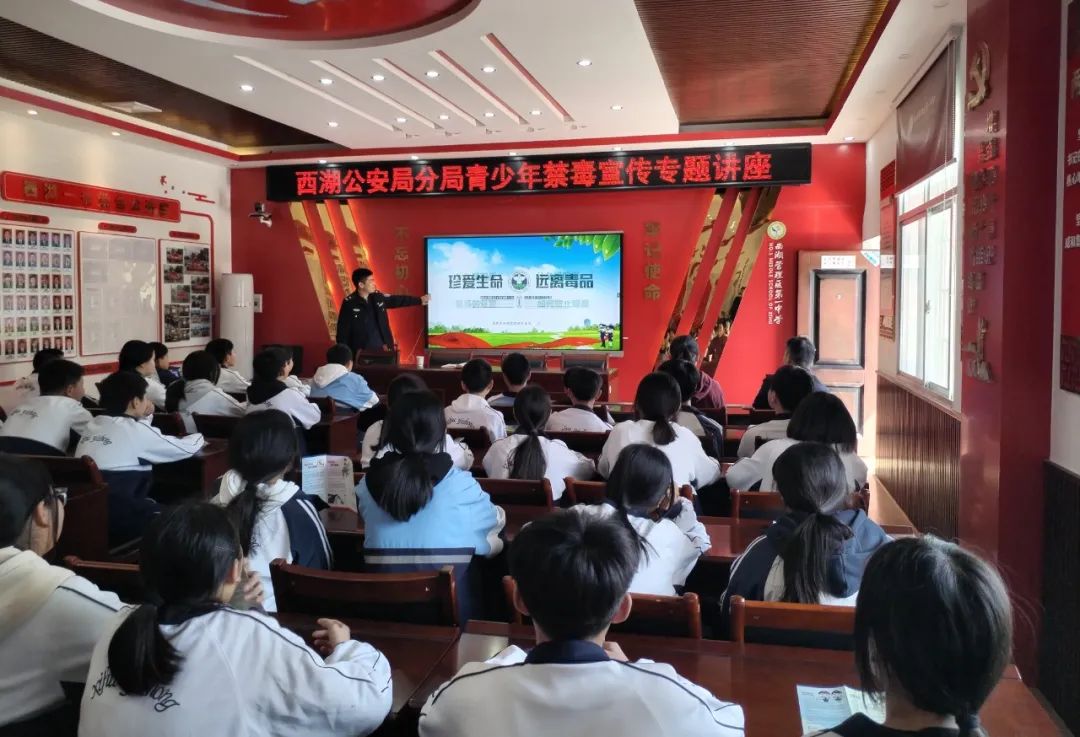 禁毒宣传进校园。青少年是祖国的未来,做好青少年毒品预防教育至关重要。西湖管理区扎实开展青少年毒品预防教育工作,共开展校园禁毒宣传教育讲座2场,举办校园禁毒知识抢答赛1场,青少年禁毒“防火墙”不断筑牢。